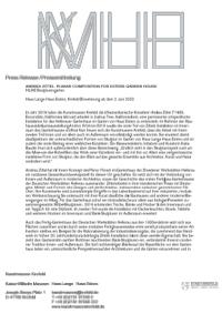 Die kostenfreie Veröffentlichung ist nur im Rahmen der aktuellen Berichterstattung erlaubt (ab 3 Monate vor Ausstellungsbeginn bis 6 Wochen nach Ende der Ausstellung). Nutzungen in Social Media sind ohne Genehmigung nicht zulässig und zudem grundsätzlich kostenpflichtig. Alle weiteren Nutzungen sind lizenz- und gebührenpflichtig. Bitte kontaktieren Sie in diesem Fall die VG Bild-Kunst direkt: reproduktionsrechte@bildkunst.de
