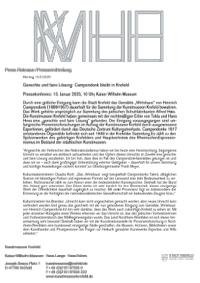 Die kostenfreie Veröffentlichung ist nur im Rahmen der aktuellen Berichterstattung erlaubt (ab 3 Monate vor Ausstellungsbeginn bis 6 Wochen nach Ende der Ausstellung). Nutzungen in Social Media sind ohne Genehmigung nicht zulässig und zudem grundsätzlich kostenpflichtig. Alle weiteren Nutzungen sind lizenz- und gebührenpflichtig. Bitte kontaktieren Sie in diesem Fall die VG Bild-Kunst direkt: reproduktionsrechte@bildkunst.de