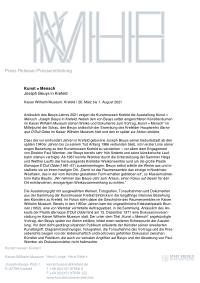Notes on the copyright of VG Bild-Kunst Publication free of charge is only permitted in the context of current reporting (from 3 months before the start of the exhibition until 6 weeks after the end of the exhibition). Uses in social media are not permitted without permission and are also generally subject to a fee. All other uses are subject to licensing and fees. In this case, please contact VG Bild-Kunst directly: reproduktionsrechte@bildkunst.de