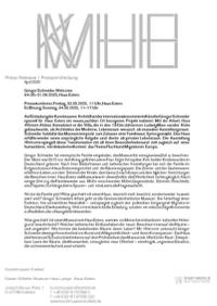 Publication free of charge is only permitted in the context of current reporting (from 3 months before the start of the exhibition until 6 weeks after the end of the exhibition). Uses in social media are not permitted without permission and are also generally subject to a fee. All other uses are subject to licensing and fees. In this case, please contact VG Bild-Kunst directly: reproduktionsrechte@bildkunst.de